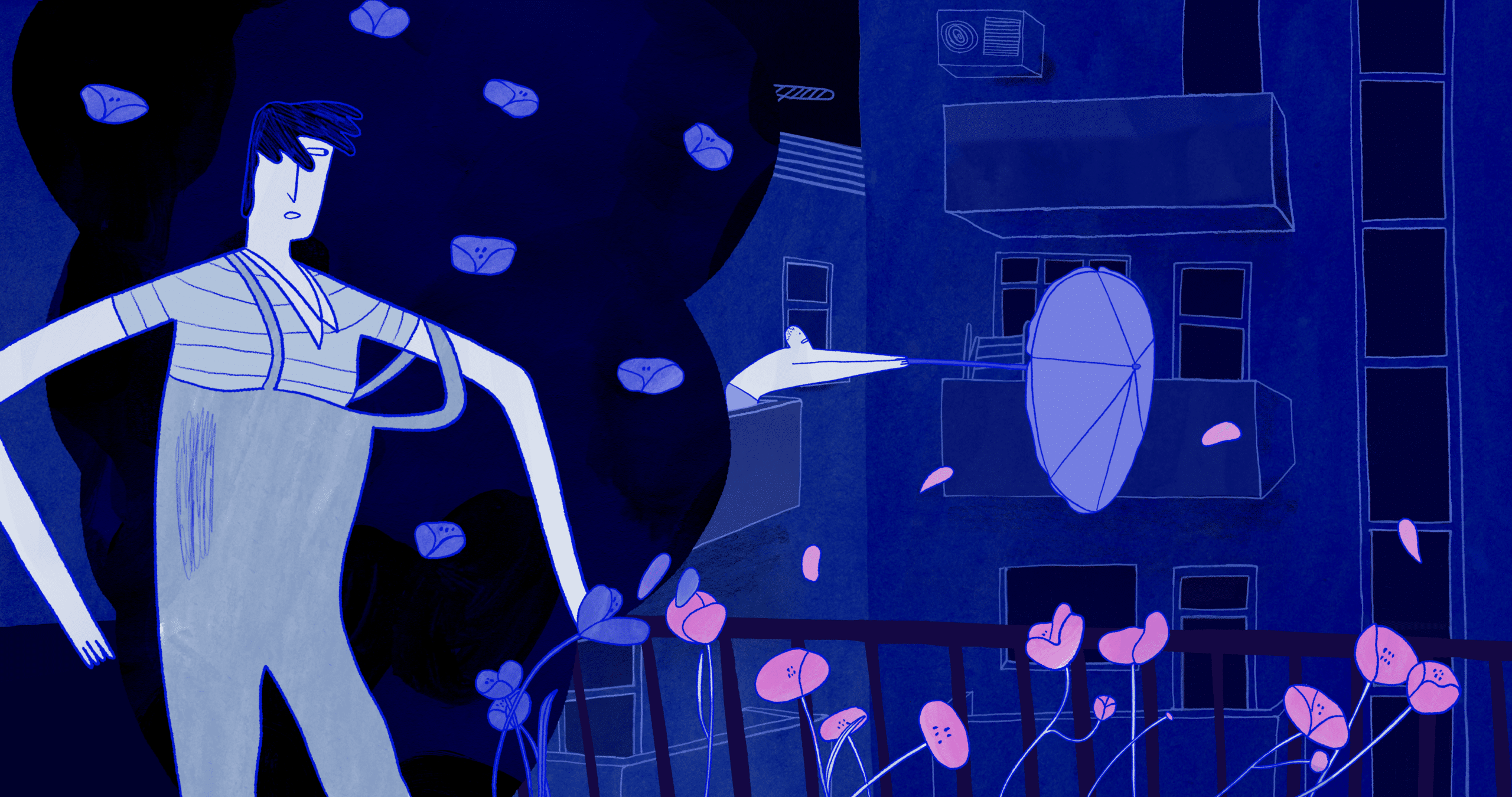 Par une chaude journée d’été, les habitants d’une cour d’immeubles sortent sur leur balcon. Alors qu’un orage éclate soudain, l’une d’entre eux est touchée par la grâce de l’inspiration. Elle va donner à ses voisins l’impulsion pour vivre plus pleinement l’instant présent.